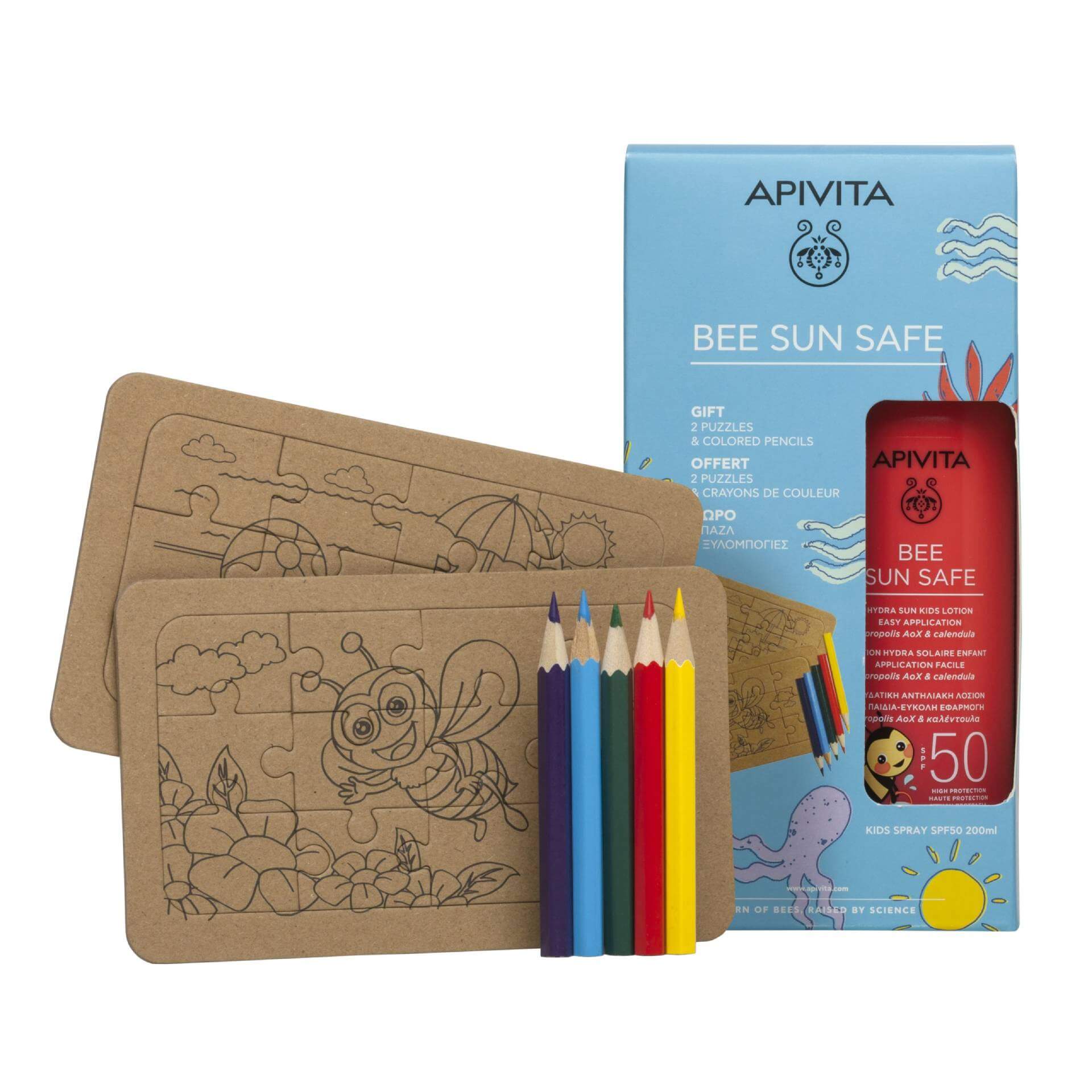 High sun protection for children. With the purchase of your favorite moisturizing sunscreen lotion for children you get as a gift 2 kraft puzzles & colored pencils to keep your little ones busy!