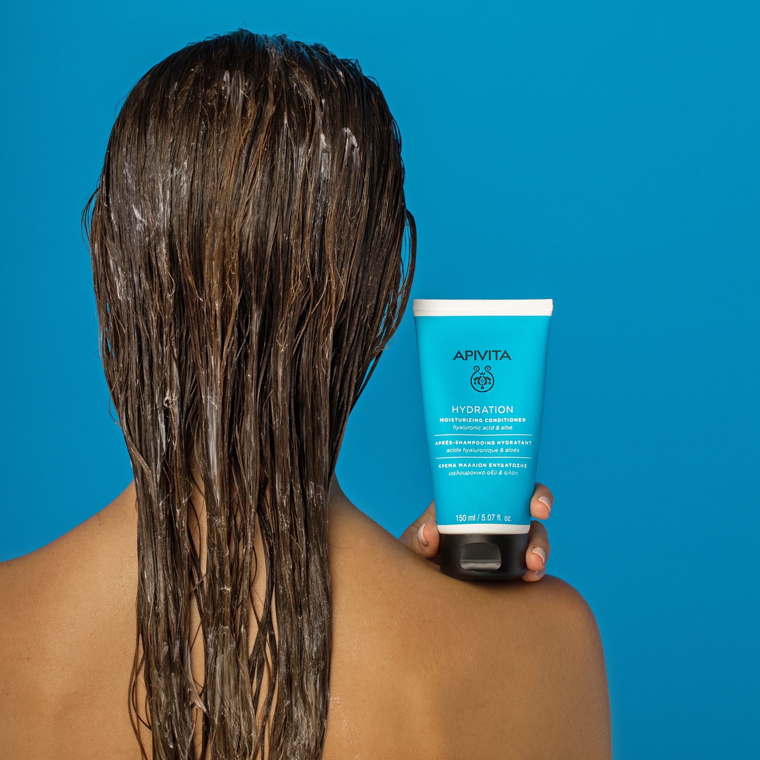 Proper hydration ensures the health of both scalp and hair. Proper nutrition combined with the APIVITA moisturizing cream and moisturizing mask can contribute to the good health of the hair.Moisturizing Conditioner. A rich formulation with 97% natural ingredients.