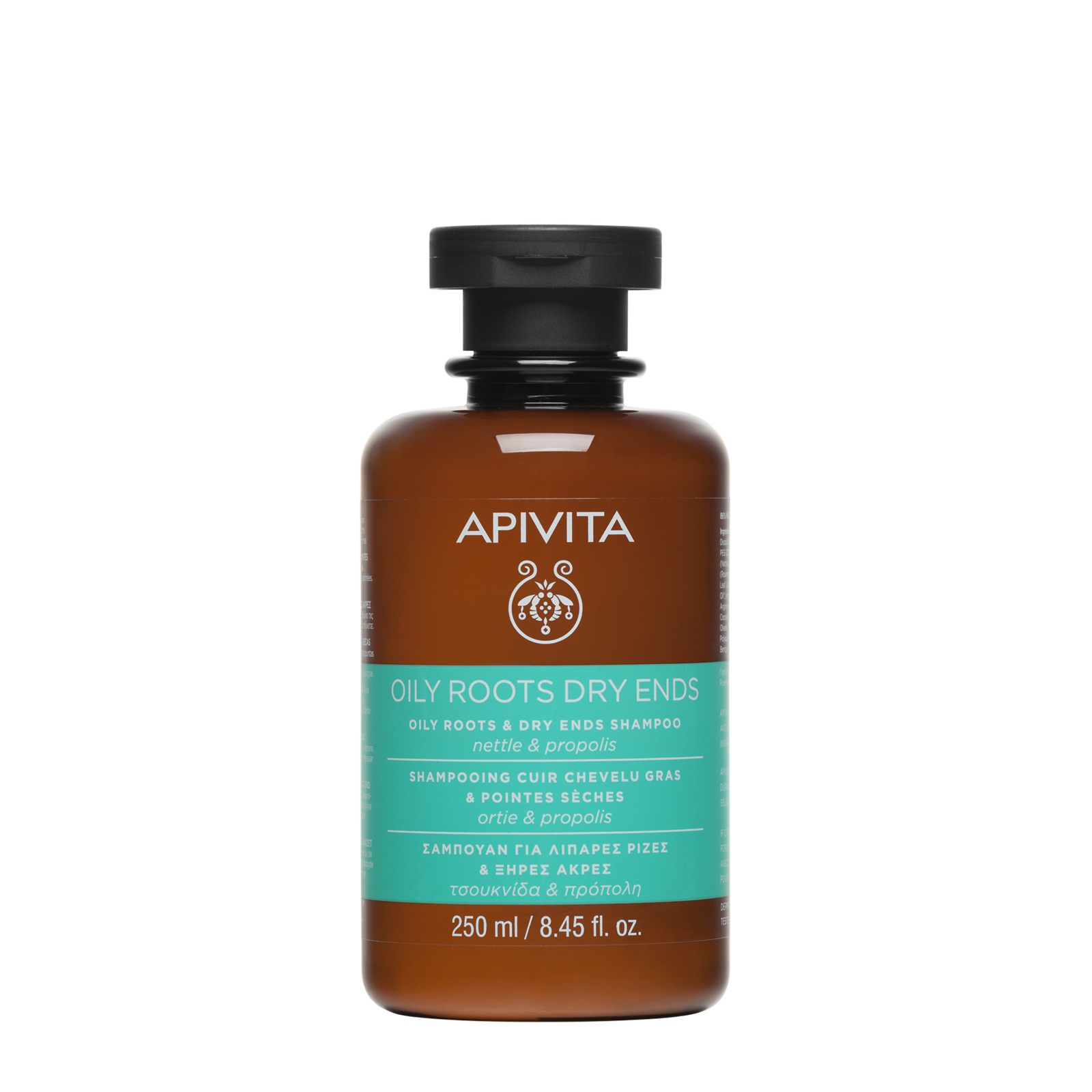 - Cleanses gently and balances the oiliness of the ends thanks to Greek organic nettle, propolis and sage and grapefruit organic essential oils.