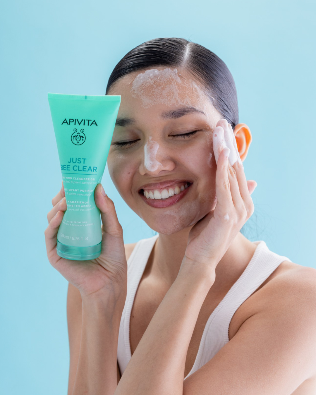 It is enhanced with propolis AmC, the exclusive global patent of Apivita capturing propolis’ highest potency antimicrobial molecules, and proven to inhibit the formation of C. acnes biofilm1, one key parameter involved in acne condition. Perfectly associated with plant salicylic acid, the natural alternative to the widely prescribed keratolytic molecule, it: