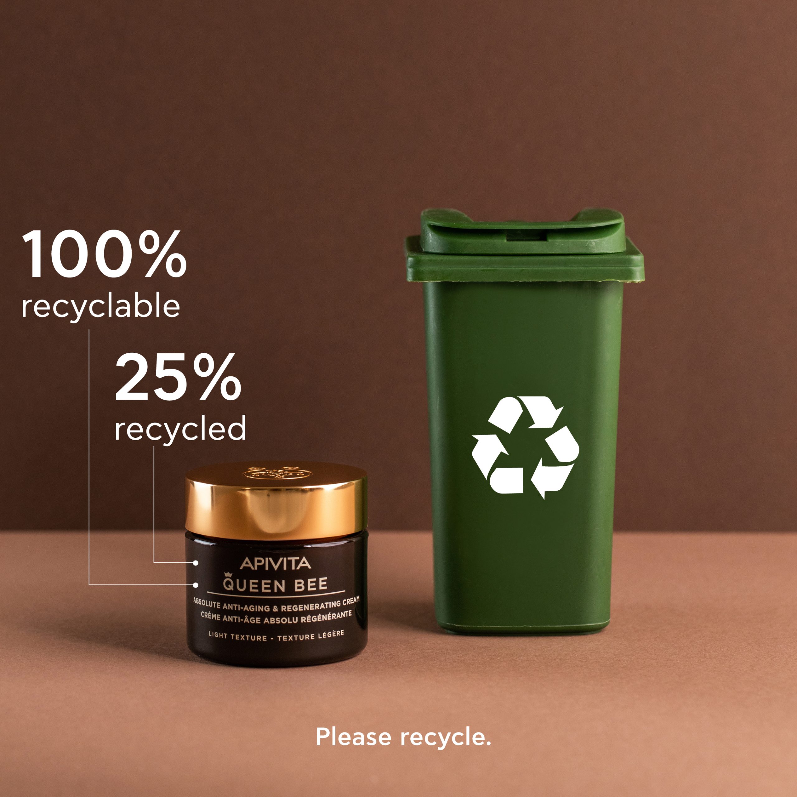 Jar 50ml: 25% recycled glass, 100% recyclable.