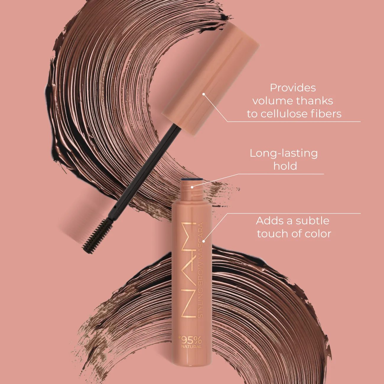 Meet the styling brow mascara that delivers perfectly shaped, full, and naturally defined brows. Thanks to the filling bamboo-derived cellulose fibers, this mascara adds volume, imparts a subtle tint, and holds brow shape all day long. Forget sparse, unruly brows. This brow mascara enhances their shape, fills in gaps, and provides a healthy, thick appearance. It’s the perfect solution for anyone looking to style their brows quickly and effortlessly. What makes this mascara special? Innovative cellulose fibers from bamboo naturally boost brow volume while offering soft and flexible hold. It’s the ideal combination of styling, care, and comfort. After using this mascara, your brows will appear fuller, more defined, and perfectly groomed. The subtle tint accentuates their natural beauty, and the “wow” effect lasts all day. Give your brows professional styling and maximum volume. Try the volumizing brow mascara today and enjoy the amazing results. Available in several shades to match every beauty type.